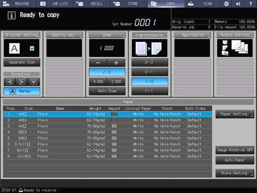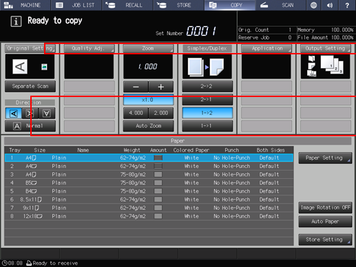 To display the Original Setting screen, press Original Setting on the COPY screen.