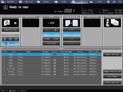 To display the Original Setting screen, press Original Setting on the COPY screen.
