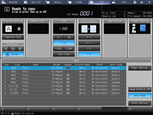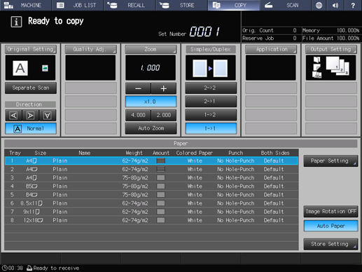supplementary explanationYou can change a paper setting for cover sheets on the MACHINE screen or COPY screen. Perform the paper setting procedure after step 4, if desired.