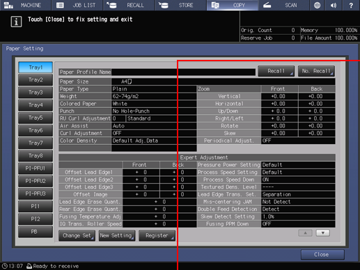 supplementary explanationPress Cover Fine Adj. in the right of Change Set to display the Cover Fine Adj. screen.