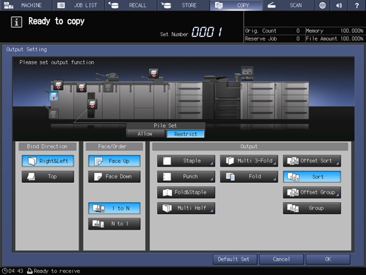 An icon representing specified function is displayed under Output Setting on the COPY screen.