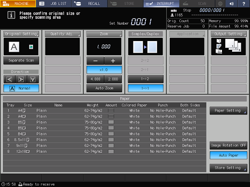 When interrupt copying is completed, the settings for the previous job is restored automatically.