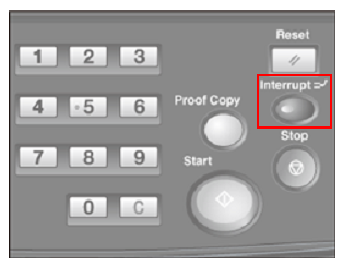 Pressing Interrupt on the control panel stops the machine operation temporarily at the timing available for interrupt copying and allows you to copy with different settings.
