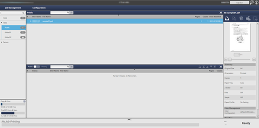 The specified HDD saved job is recalled and saved as a hold job. Click the Hold tab to check the result.
