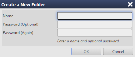 supplementary explanationEnter the name in Name on the Create a New Folder screen. Enter the password in Password as needed. Click OK to display the created folder in the tree on the left.