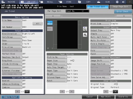 Output Setting | Set Bind DirectionSort/GroupFaceOrderFold Print SideNeedless Tab Exit, etc. | |