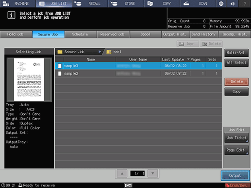 supplementary explanationFor details about the icons displayed in the list, refer to Hold Job Screen.