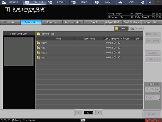 You can edit the pages of secure jobs on the touch panel of the main body.