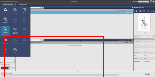 supplementary explanationIn Print Manager, you can only edit print jobs. To edit a copy job or scan job, use the touch panel of the main body.