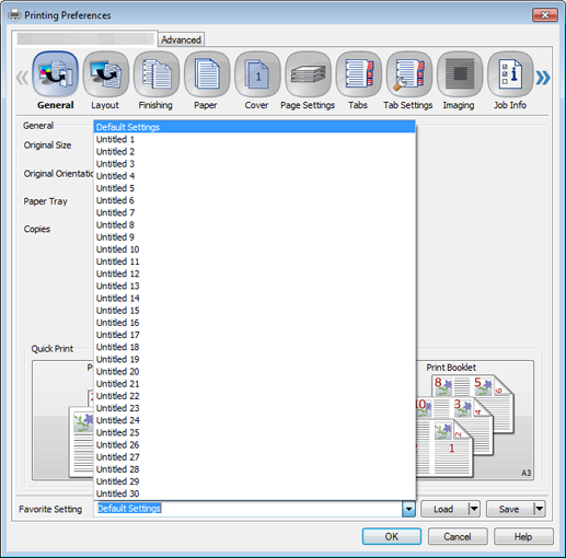 When the print setting is completed, select any user setting number from the Favorite Setting pull-down menu.