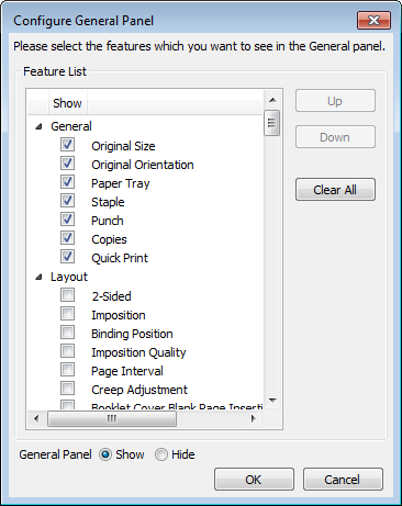 On the Configure General Panel screen, select setting items you want to display on the General screen.