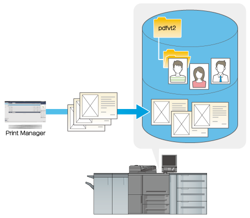 Use Print Manager to upload the PDF/VT-2 file on the computer to a hold job, secure job, or HDD job. This section describes how to upload a file to a hold job.