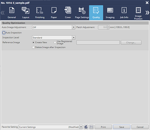 In Inspection Level Setting, specify the desired level depending on the output purpose.