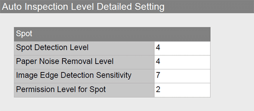 Spot(XXX) Level (n) | Indicates the spot level (n). For details on the spot level, refer to Automatic Inspection Level Setting. ("xxx" indicates a serial number.) |