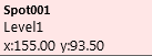 x:XXX.XX y:XXX.XX | Displays the spot position by using the upper left of the screen as the origin of coordinates. ("x" indicates the lateral position, and "y" indicates the vertical position.) |