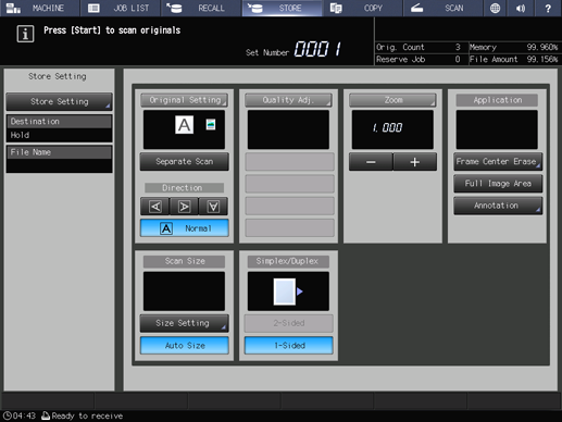 Press Store Setting, and then specify a destination and assign a name to the job.