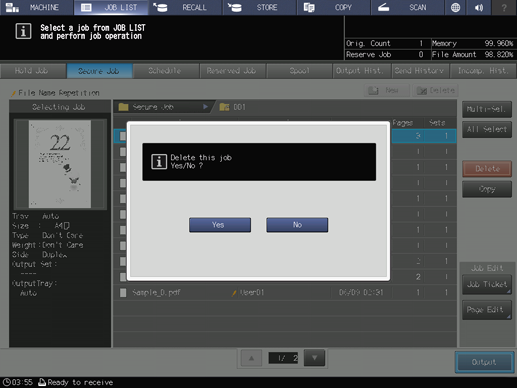 supplementary explanationPress Multi-Sel. first to select multiple jobs.