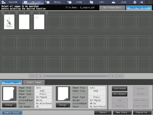 Image Page Edit | Provides preview images of the page sequence. This function also allows you to insert, move, or copy the images or sheets (covers). |