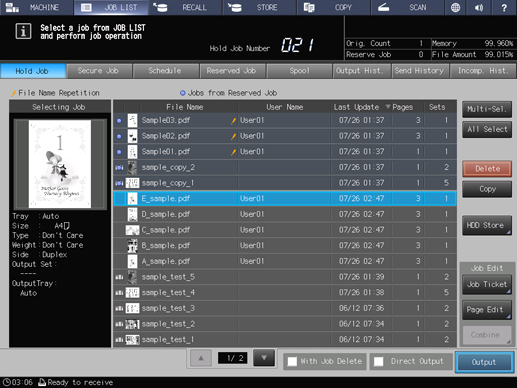 Select the image file to adjust the tone curve on the Hold Job screen or Secure Job screen.