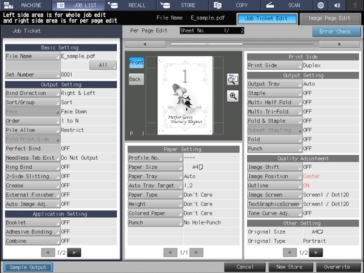 supplementary explanationFor the combined image page data, such as 2 in 1, each combined image is displayed under the Image In Sheet on the lower left of the screen. The image selected here is displayed.