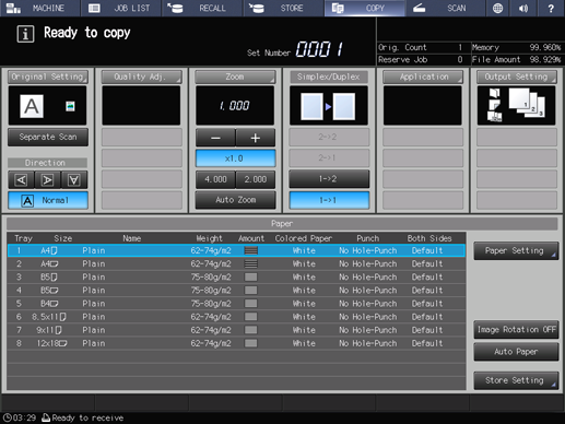 • supplementary explanationWhen HDD Store + Print is selected, Ready to copy is displayed in the message display area of the COPY screen.