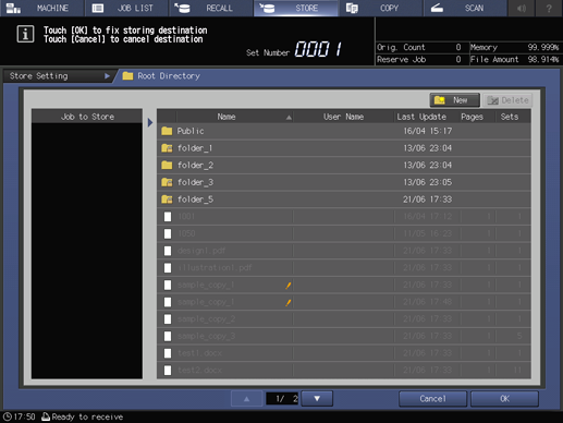 • supplementary explanationPressing HDD Store displays the Root Directory screen. Select a destination, and then press OK.
