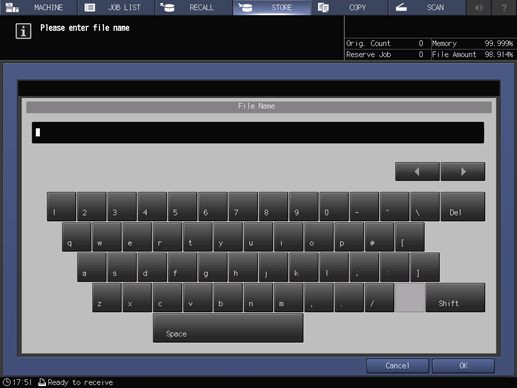 • supplementary explanationWith HDD Store selected, the message Press [Start] to scan originals is displayed in the message area of the COPY screen.