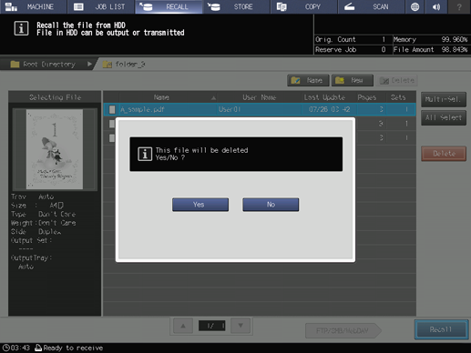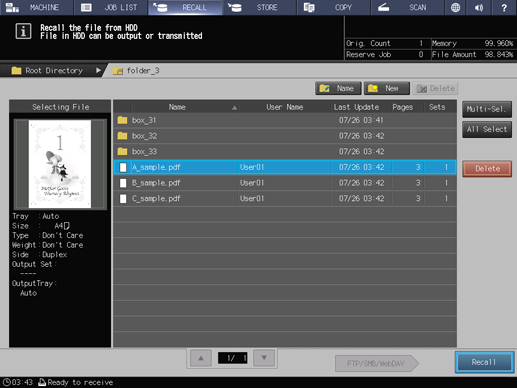 supplementary explanationSelect the directory (root directory, folder, user box) of the HDD where the job is stored. If the folder or user box is password-protected, enter the password.