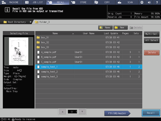 supplementary explanationSelect the directory (root directory, folder, user box) of the HDD where the job is stored. If the folder or user box is password-protected, enter the password.