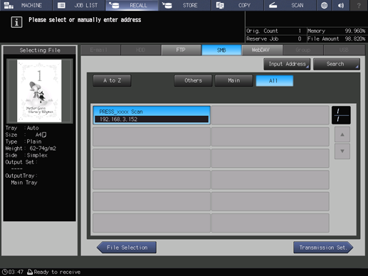 The screen to specify destinations is displayed.