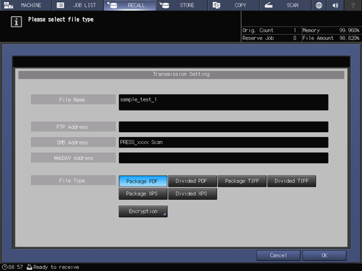Press FTP/SMB/WebDAV.