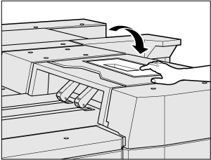 • supplementary explanationThe clamp section upper door cannot be opened while the saddle stitcher is in the initializing state. After initializing is completed, open the upper door.