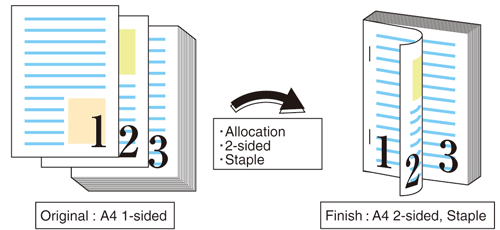 1-sided or 2-sided print on a page basis: You can set 1-sided or 2-sided print for each page. (Page Settings tab of the printer driver. Refer to Page Settings Screen.)