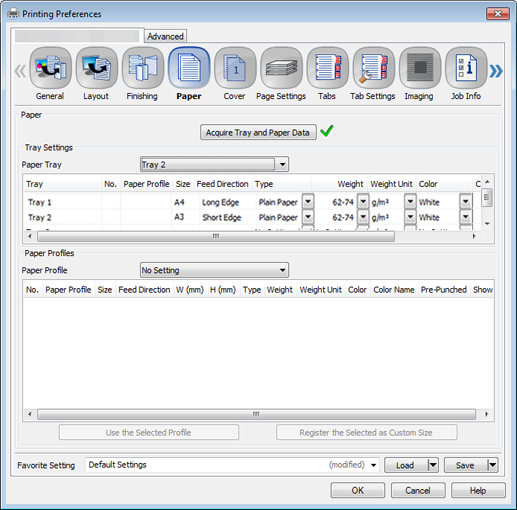 Click the Paper tab, and then click Acquire Tray and Paper Data.
