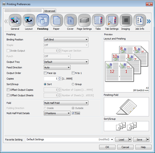 Click the Finishing tab, and then set Fold and Multi Half-Fold Details.