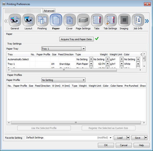 Click the Paper tab, and then click Acquire Tray and Paper Data.