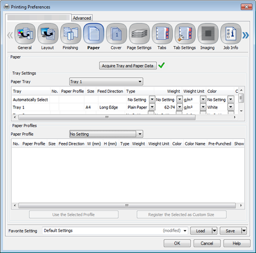 Click the Paper tab, and then click Acquire Tray and Paper Data.