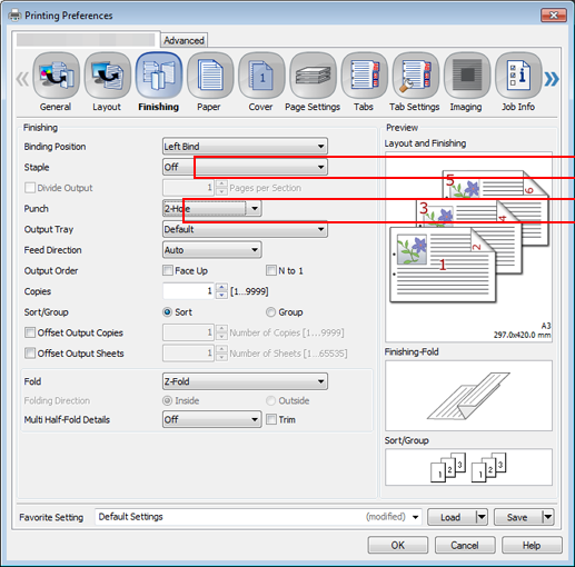 Click the Finishing tab, and then set Fold.
