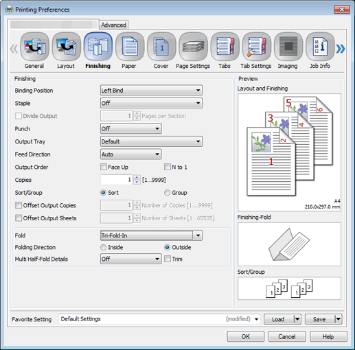 Click the Finishing tab, and then set Fold and Folding Direction.