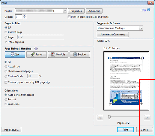 Printing starts. When the printing is completed, go to Checking the finishing, and check the finishing of the printed document.