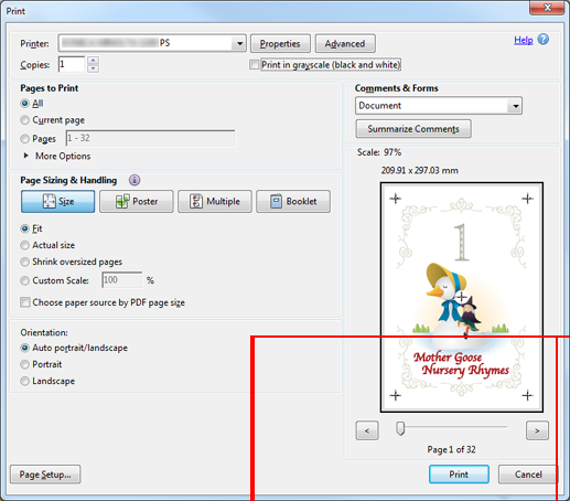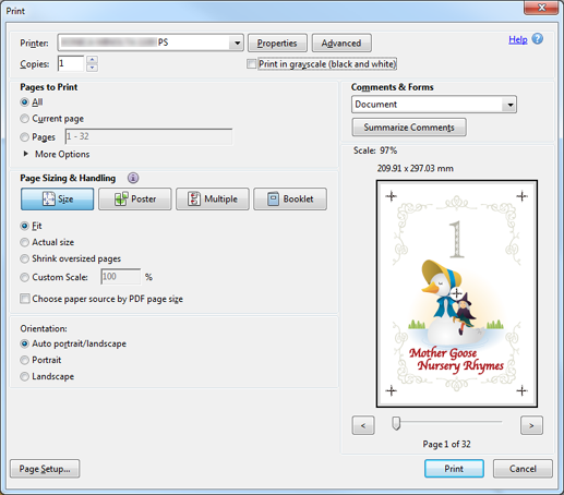 Open the original data with the application, and then click Print on the File menu.