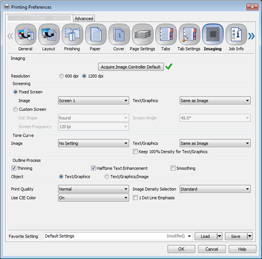 Click the Imaging tab, and then click Acquire Image Controller Default.