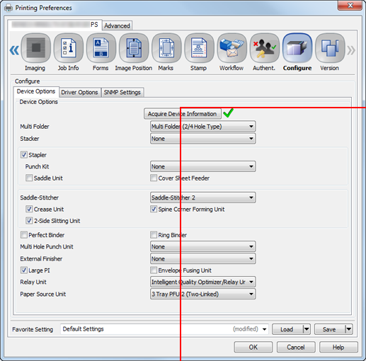 is displayed at the right of Acquire Device Information. If it is not displayed, click Acquire Device Information to acquire device option information.