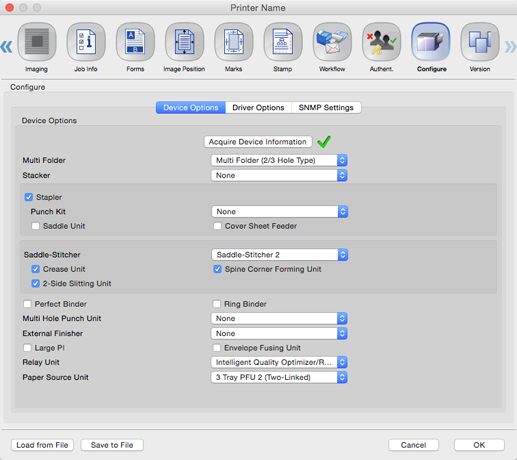 is displayed at the right of [Acquire Device Information]. If it is not displayed, click [Acquire Device Information] to acquire device option information.