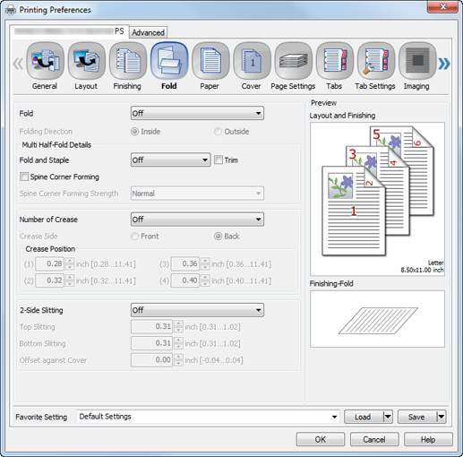 Multi Half-Fold Details | Fold and Staple | Off, 2 Positions, 4 Positions | Specify the number of staple positions when Fold and Staple is specified. |
