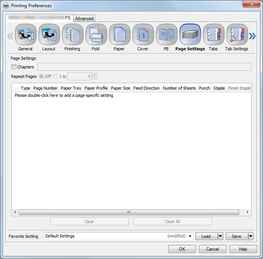 Page Settings | Type | Set a print type for a page specified in Page Number. Select Same as Body to apply the setting for the original. |
