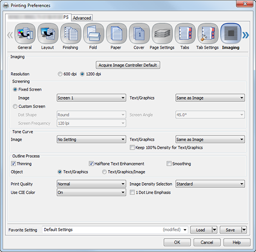 Tone Curve | Image, Text/Graphics | Select the tone curve acquired from the image controller. You can specify the tone curve settings using the Color Centro application. |