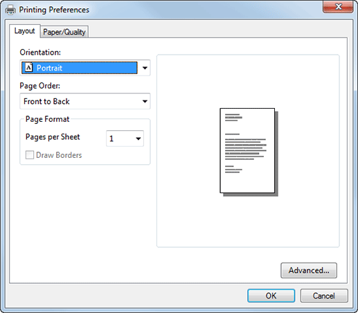 You can set the print orientation, page order, and number of pages per sheet.