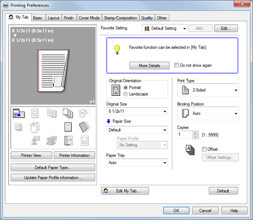 Edit My Tab | - | You can register or delete the function to be displayed on the My Tab. Other tab functions can be placed on the left or right of My Tab. |