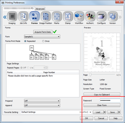 supplementary explanationFor the default password, refer to the Help of the printer driver.